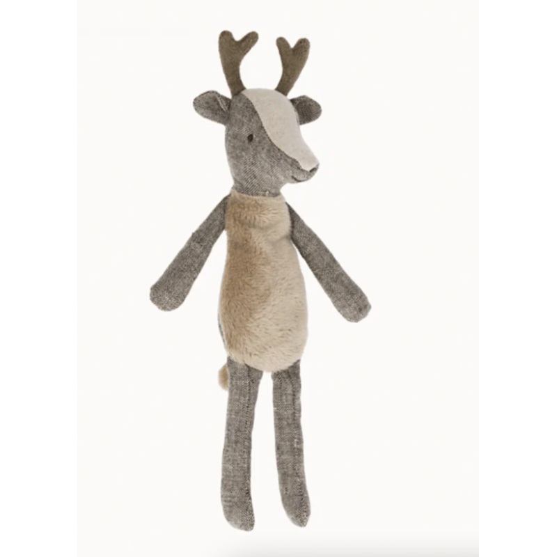 A sweet and adorable deer father. He lives in the small Gingerbread house with the rest of the deer family. Deer father is the tallest in the family and he has a very soft, furry belly. His tail is fuzzy like the rest of the family’s, and his antlers are nice and soft faux suede.