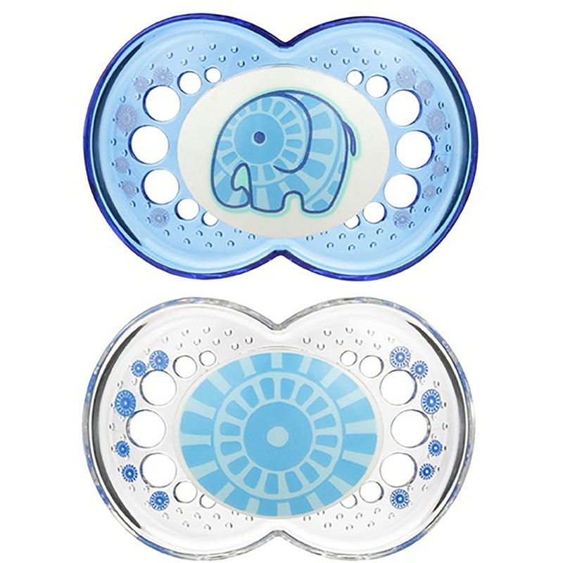 Designed to Keep Baby CalmMAM works closely with pediatric dentists and orthodontists to develop and design pacifiers for babies of all ages. Our pacifiers are anatomically correct, adapting to the baby’s mouth so the pacifier is always in the proper position. A curved shield, big air holes and an innovative inside surface all comfort baby and help prevent skin irritation. All MAM pacifiers also feature a soft silicone nipple that feels more like mom and an anti-slip surface that helps keep the pacifier in baby’s?mouth.Aquatic motifs with translucent shields