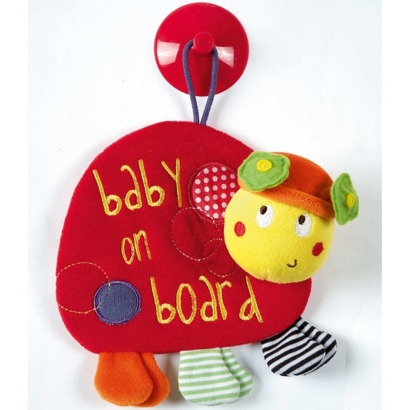 Vibrant, soft velour ?baby on board? sign for the car Lotty Ladybird design with the "baby on board" slogan embroidered on her back. Suction cups allows for easy attachment to car window or other smooth surfaces Measures 6" high
