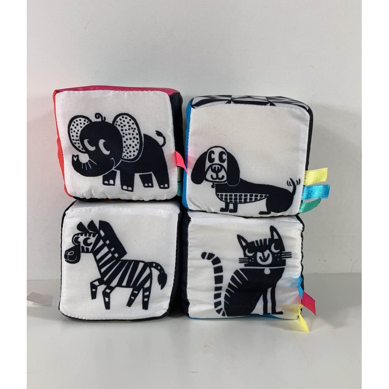 “A set of soft sensory infant blocks with bold patterns and textures.”