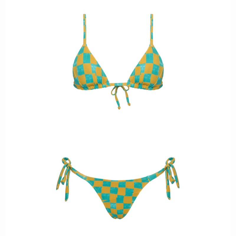 Adjustable triangle bikini on the back, with cut-off detail on the front. Removable cups. Bottom cut at the front and adjustable via bow on the side.64% POLYESTER 16% LUREX 12% POLYAMIDE 8% ELASTANELINING: 84% POLYAMIDE 16% ELASTANELATITID has chosen the b