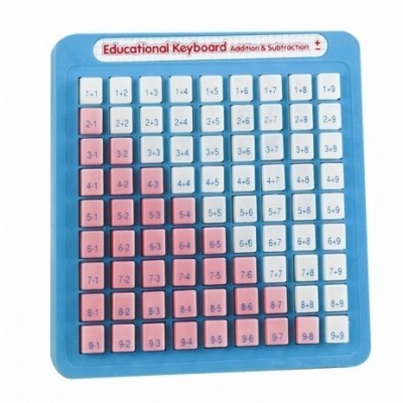Help kids develop basic math skills with these handy, portable, plastic boards. Perfect for independent practice, each of the 81 keys has a math equation on it -- Press it down to reveal the answer! No batteries required! Intended for ages 5 years and up.