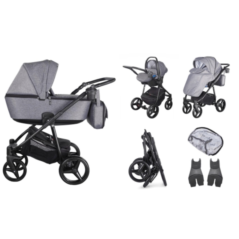 - Complete Travel System: Includes a Carrycot, Seat Unit, Car Seat, Car Seat Adaptors, Changing Bag, Raincover, Insect Net, Handmuffs, and Cup Holder.