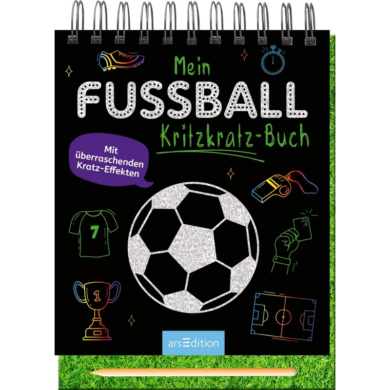 Sportlicher Kratzelspa!Hier warten 18 Kratzseiten darauf, von dir freigekratzt zu werden. Zu jeder Seite gibt es tolle Anregungen zum Zeichnen, die deine Kreativitt herausfordern: Entwerfe dein Lieblingstrikot oder ein Vereinslogo. Kratzel dir einen schnen Pokal oder skizziere deine Angriffstaktik.18 thematisch passende Hintergrnde: Hinter der schwarzen Oberflche warten tolle Hintergrnde darauf, freigekratzt zu werdenMit Kratzstift zum Sofortloslegen: Der Holzstift liegt gut in der Hand und zaubert schne EffekteMit Malideen und Anregungen: Zu jeder Kratzseite gibt es tolle Anregungen, was man auf dem Scratch-Papier alles malen und gestalten kannFr unterwegs: Das Kritzkratz-Buch passt in jede Tasche, sodass im Auto, im Wartezimmer oder im Kinderzimmer keine Langeweile aufkommtToll als Geschenk: Ideal fr Kinder ab 5 Jahren, zum Geburtstag oder einfach als Mitbringsel fr zwischendurchOb Fuball, Trikot oder PokalDas Kritzkratz-Buch lsst viel Platz zum Doodeln, Kritzeln und Kreativsein. Mit dem beiliegenden Stift knnen kleine Knstler sofort loslegen und eigene Kunstwerke zaubern.