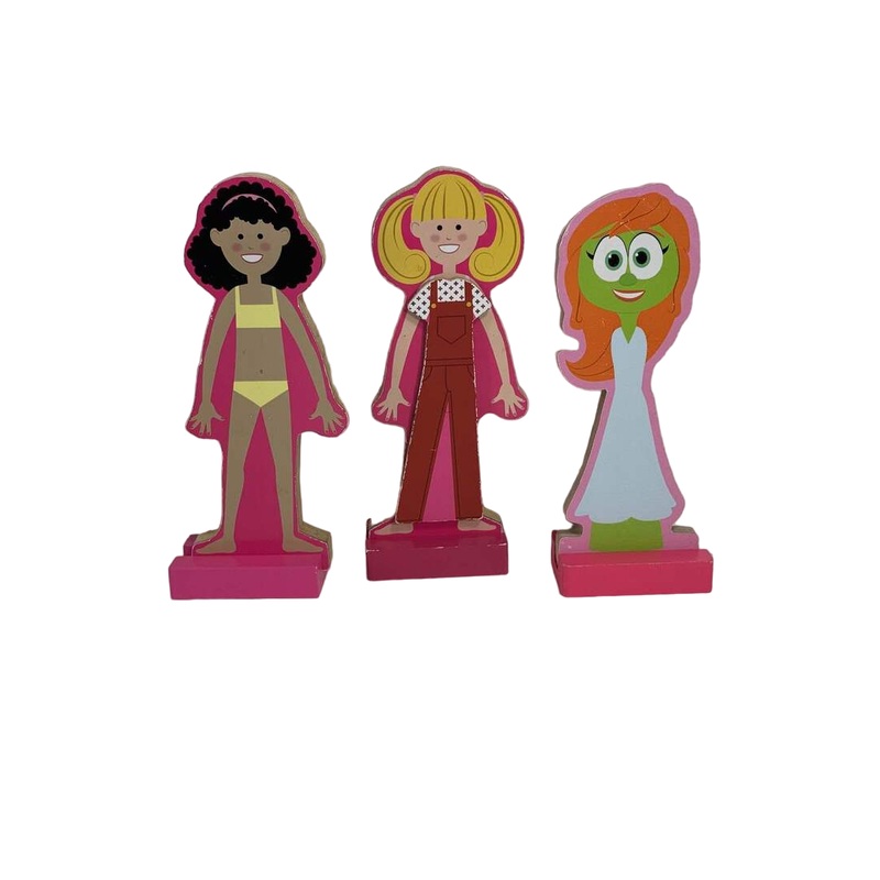 “Dress up these cheery wooden dolls in endless combos of cute shirts, dresses, pants and shoes.”