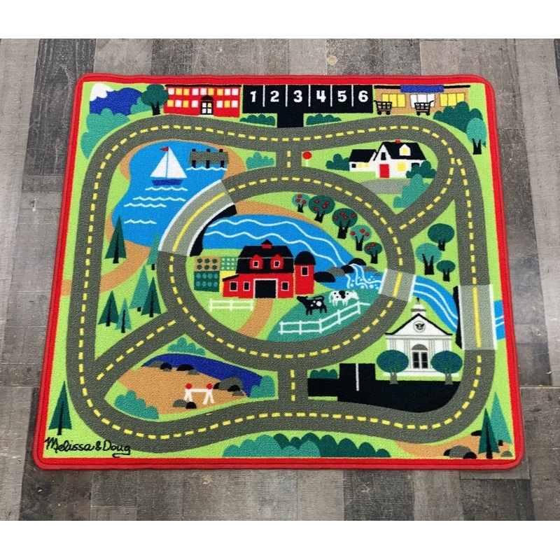 Condition: Gently Used "This colorful road rug comes with four cars to drive on looping streets and lanes -- and its varied terrain makes it ideal for trains, chunky play figures, and vehicles of all kinds! Durably made to look great for countless playtime