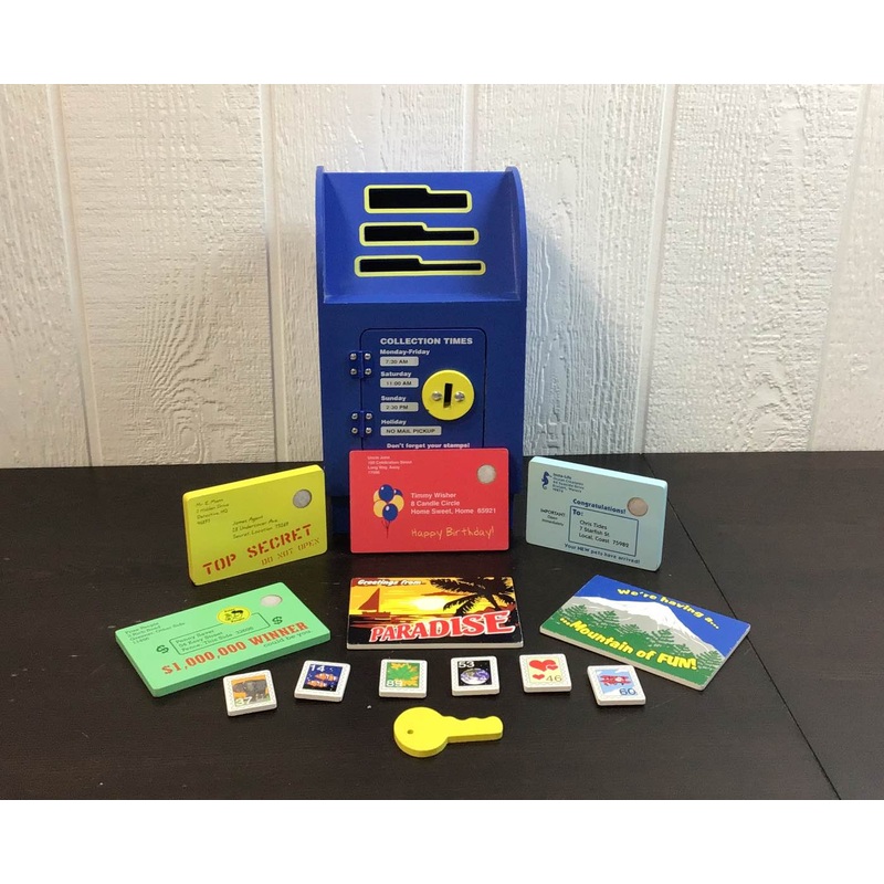 “Youve got mail! Children absolutely love receiving mail and now they can send and receive their own play mail with their very own mailbox. Made with the quality you would expect from Melissa & Doug, this wooden mailbox includes letters, removable stamps, and a key for even more pretend play.”