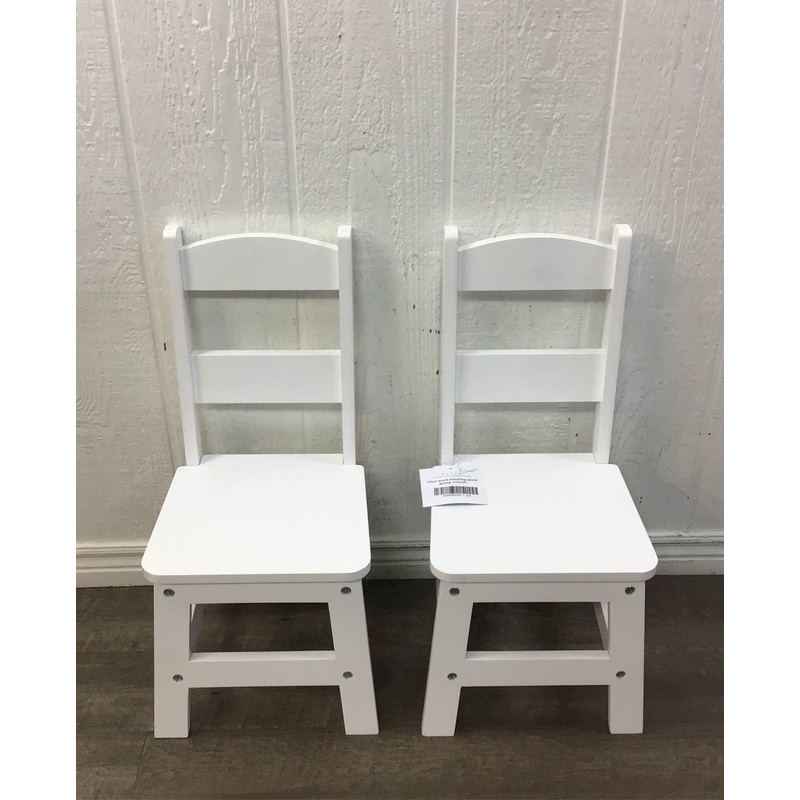 Condition: Gently Used"Pull one of the two durable chairs up to a child-size table--they're sized just right for kids, but strong enough to hold moms and dads, too! This sturdy wood chairs set comes in natural, white, or espresso finish to fit with any hom