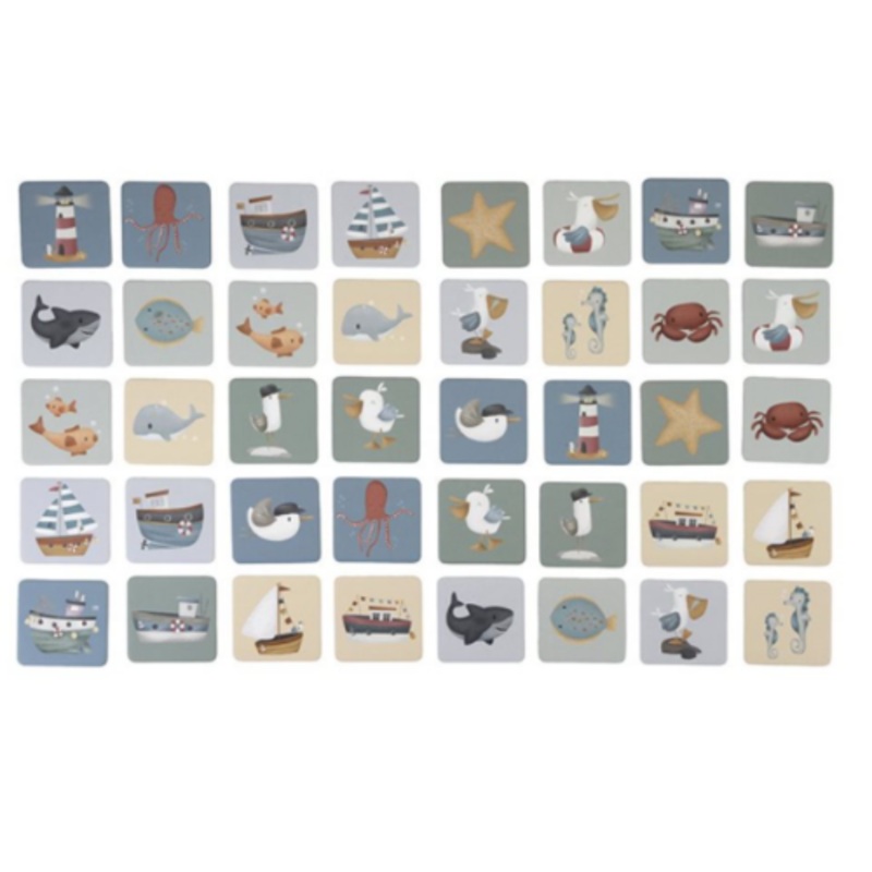 Find the lighthouse, search for the starfish. This Little Dutch memo game is as fun as it is educational. Each card is beautifully decorated with a harbour-inspired illustration. Shuffle the cards and lay them face down on a surface. Collect the most match