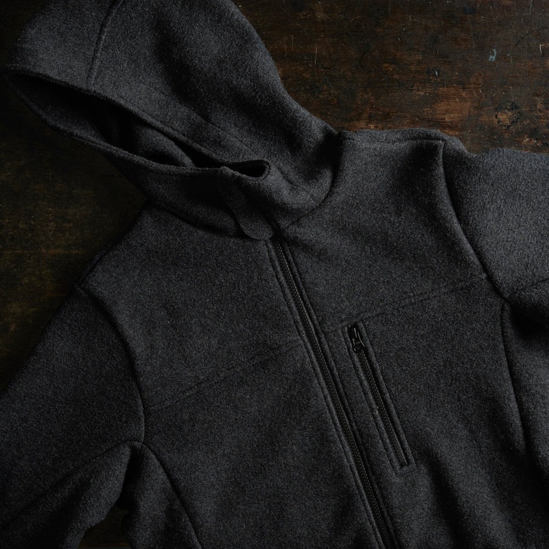 This boiled merino wool jacket is smart and practical with an extra large hood and cotton lining in the body. It is designed with a zip breast pocket, the perfect size for phones and wallets. An elasticated band at the cuffs ensures to keep the cold winter breeze out. Looks great matched with Disanas looped scarf for added protection from the cold. Ideal for everyday winter wear.