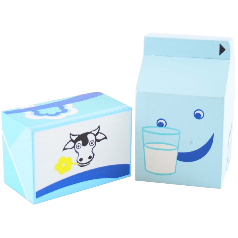 This wooden milk and butter set is a great pretend play food set. Use it for cooking in your play kitchen or better still, why not sell it in your pretend play wooden shop or market stall?