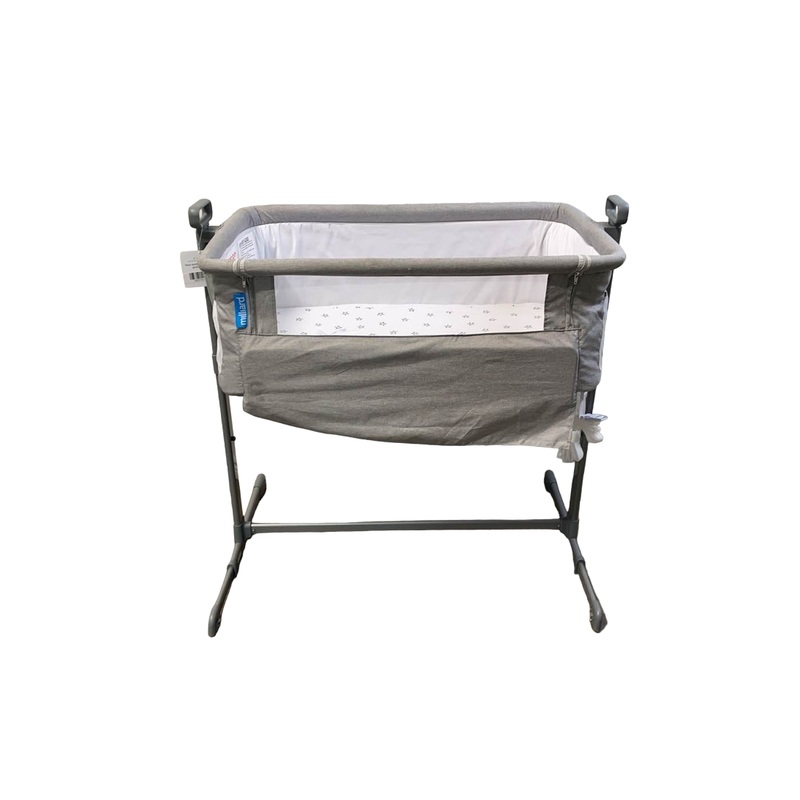 Condition: Gently Used "Great option for keeping baby sleeping safely by your bed. Features adjustable heights and a zip down side."