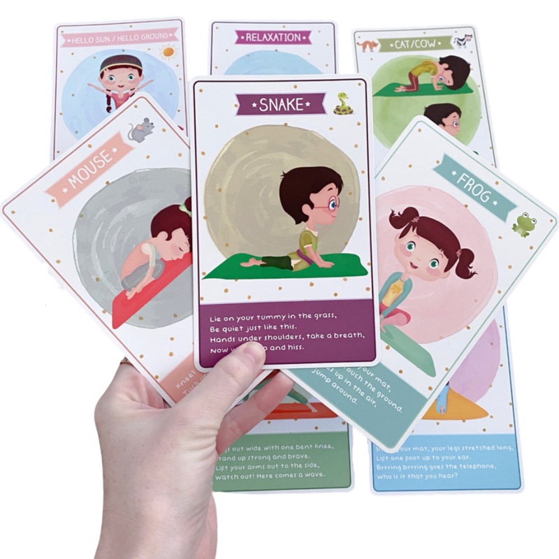 Illustrated yoga cards are a fantastic tool for parents or teachers to use to encourage children to practice different yoga poses. Each card has a cute instructional rhyme to help little yogis form the pose.