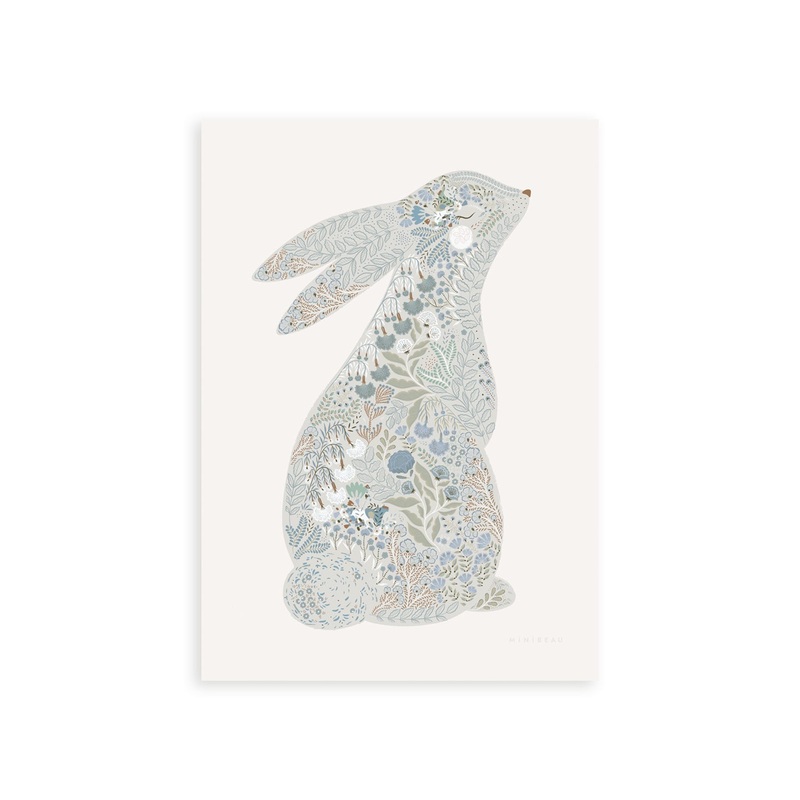 This serene bunny adorned with the most beautifully decorative and ornate blooms and foliage, has been inspired by classic books from Minibeau artist Becca Barker’s childhood. This art print has a whimsical and fairytale-like feel, and its breathtaking detail means that this art print makes a sophisticated finishing touch to any nursery.