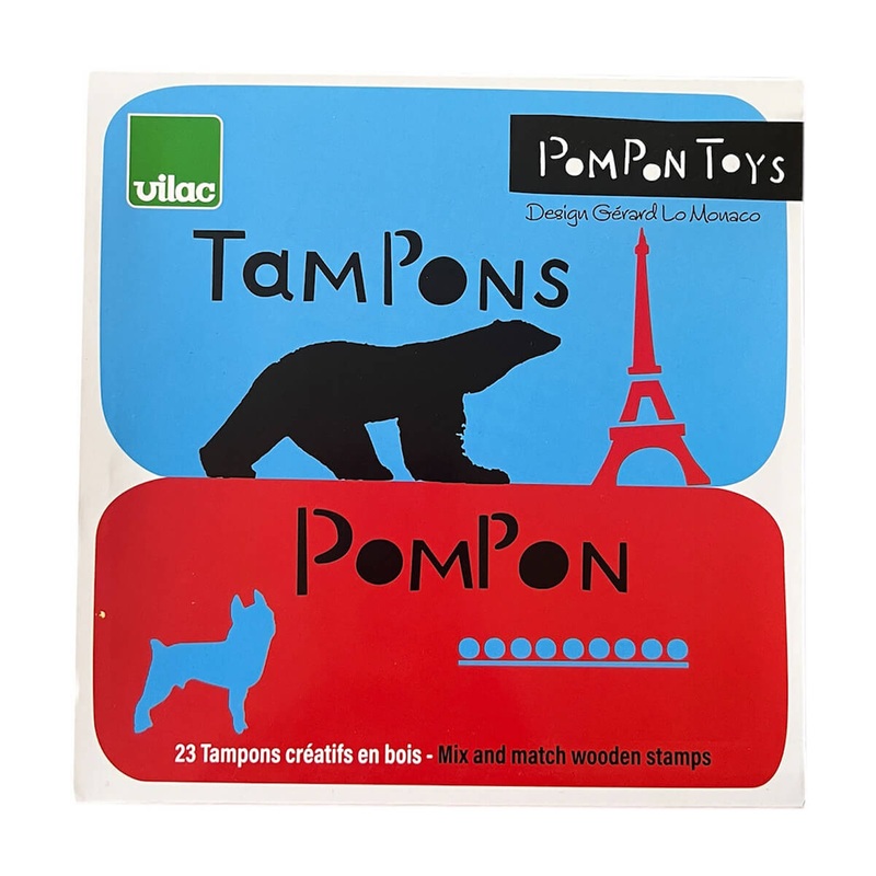 Mix & Matchwooden stamp set by Vilac.This beautiful setis great for developing creativity and fine motor skills – as well as having lots of fun, of course.Set of 23 wooden stamps and 3 inkpads, which take up the clean lines of the sculptures of the artist Pompon, a contemporary of Rodin. Beautifully designed by specialist French toymakers Vilac, who have been producing timeless heirloom toys since 1911.