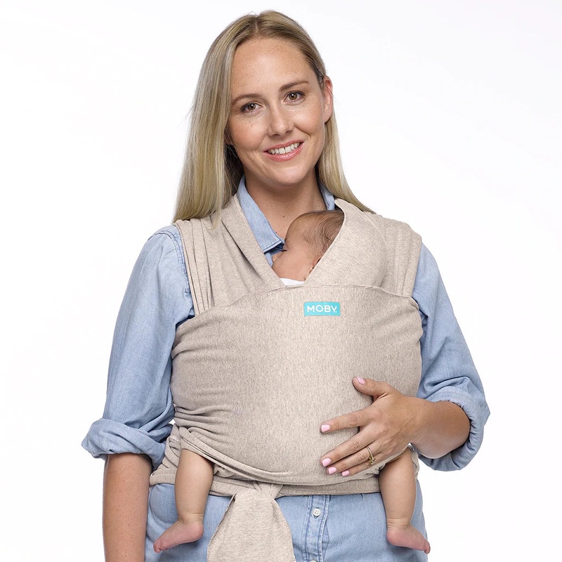 “This versatile wrap will quickly become your favorite. Keeping your baby close by and giving you the hands-free hold for those nice morning walks, cooking, or getting things done around the house. There are a number of ways you can wear your baby so this wrap will grow with your little one! Machine washable and easy to carry with you. This Evolution wrap is slightly different than the original because it is made with a cotton blend which allows for some stretch.”
