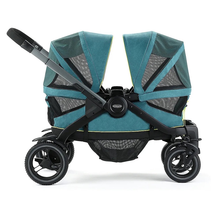Ready for adventures big and small, it’s the comfy, cozy, versatile Graco Modes Adventure Stroller Wagon. A small, compact foldone of the smallest in the marketensures easy storage and transportation. Because comfort is key, there are 2 plush seats and a footwell for little legs and feet to rest in this kids wagon. Pull it like a wagon or push it like a stroller; it easily converts from one to the other. All-terrain rubber tires with suspension let you go wherever the fun is. There’s plenty of parent storagecup holders and zippered pockets for tucking blankets, jackets, toys, and moreso you’re ready for anything. Plus, this folding wagon stroller accepts any Graco infant car seat with an adapter (sold separately), so even your infant can come along for the ride from day 1. More features include a child’s tray with cup holders, a lightweight aluminum frame, height-adjustable handle, and 2 large canopies with breathable mesh panels and UV 50 sun protection. Our sturdy toddler wagon holds up to 50 lb per seat, or 100 lb total. Use it as a beach wagon or take it to the park, this all-terrain wagon makes it easy.