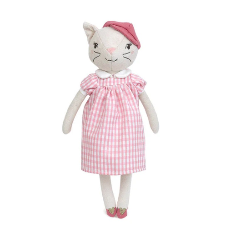 Oui, this kitty plush toy is wearing a beret! Minette Parisian Kitty Stuffed Animal owns the City of Light with her chic French cap and charming gingham dress. Mon Ami’s captivating cat plush toy is crafted of ultrasoft velour that’s gentle on a child’s delicate skin and detailed with a precious embroidered face. Fun, fabulous and full of je ne sais quoi, this whimsical cat stuffed animal is ready for strolls down the Champs-lys’es.
