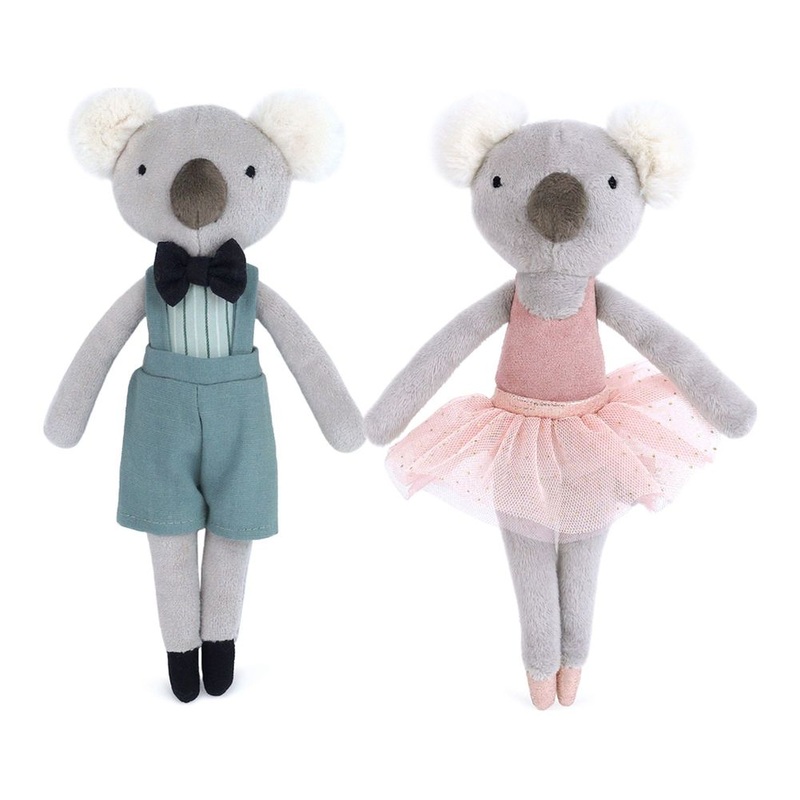 Introducing Mr. & Mrs. Cooper Koala Couple, the most delightful duo! Mr. Cooper looks dapper in his teal overalls and bow tie, always the gentleman, while Mrs. Cooper shines in her soft pink tutu, ready for a twirl. Their fluffy ears ,sweet noses and kind