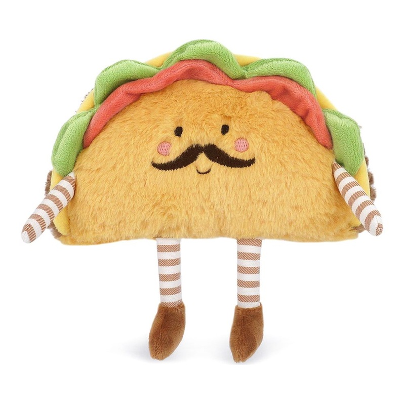 Get ready to add some spice to your life with our adorable Paco Taco Plush! Paco features all the classic taco toppings like lettuce and tomato peeking out from the top, along with embroidered rosy cheeks, a sweet smile, and a charmingly curled mustache. With whimsical striped arms and legs, this plush taco is brought to life through its soft, huggable design and delightful attention to detail. Whether you’re giving it to a friend, loved one, or someone who simply loves tacos and plushies, Paco Taco Plush is sure to bring joy. This playful companion is more than just a toyit’s a friend that sparks smiles and fuels the imagination. Zero calories, 100% fun!