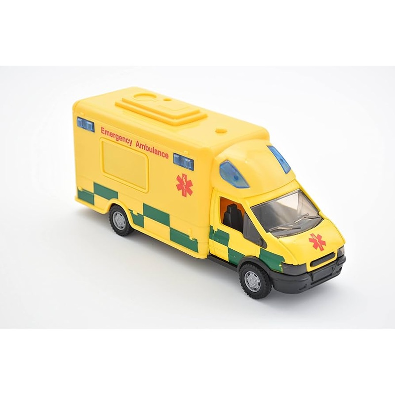 1: 48 scale paramedic rapid response vehicle with siren sounds, opening door and free wheel action. Boxed with 'try me' Function. Die cast metal and plastic parts. Length 15.5 cm. Age 3+.
