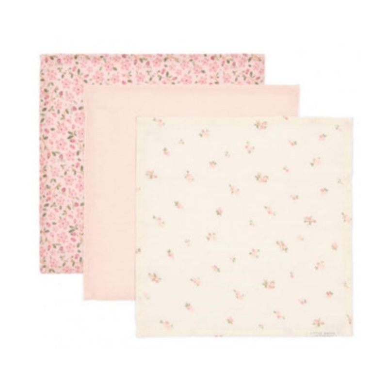 Wipe away messes and spills with the softness of these 100% organic cotton muslin cloths. This set of 3 mouth wipes is designed with practicality, versatility and breathability in mind. Whether you are feeding your little one, dabbing drool or cleaning spills, these wipes are essential for both home use and on-the-go convenience. This set of 3 mixes the Fairy Garden designs Fairy Blossom and Fairy Floral with the solid pink Blossom colour.