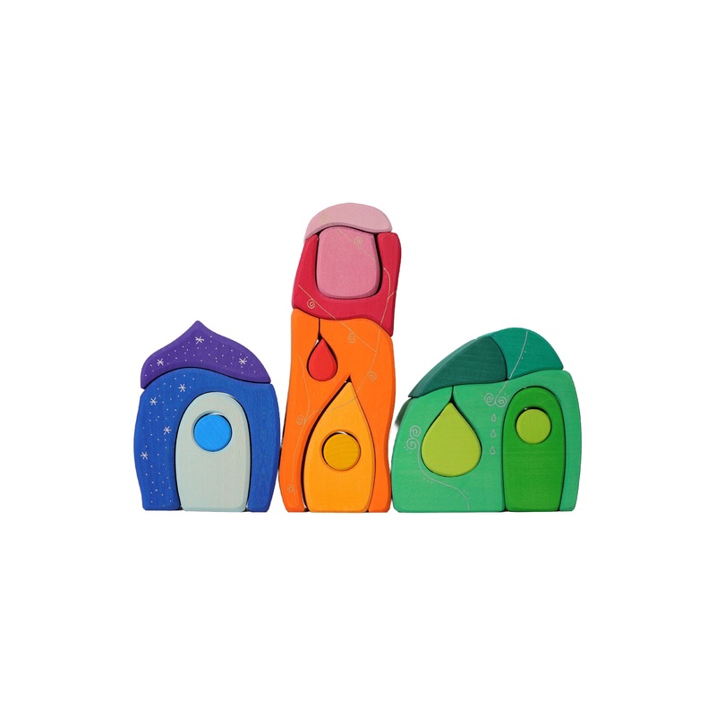 Das geheimnisvolle Mrchendorf von Grimms wird alle Bau & Stapelfans begeistern.Mit den farbenfrohen Baukltzen entstehen Fantasievolle Bauwerke, die immer wieder anders gestaltet werden knnen.So lsst sich eine tolle Erlebniswelt schaffen, in der sich Ihr Kind stundenlang verlieren kann. Das Mrchendorf kann mit anderen Bauelementen und Puppenhauszubehr ergnzt werden.Die verschiedenen Bau- Sets von Grimms ergnzen sich gegenseitig durch die verschiedenen Bauelementformen und ermglichen Ihrem Kind so ein vielseitiges und fantasiereiches Spiel.Spielerisch wird hiermit die Feinmotorik, das rumliche Denken und das Farbverstndnis gefrdert.Lieferumfang: Ein Mrchendorf mit 17 TeilenACHTUNG: Nicht geeignet fr Kinder unter 3 Jahren. Erstickungsgefahr durch verschluckbare Kleinteile.Modell: 07400Altersempfehlung: ab 3 JahreMaterial: Lindenholz gelt, farblich lasiertMae: Rosenturm 29cm/ Blaues Haus 16cm/ Waldhaus 18cmBITTE BEACHTEN SIE: Holz ist ein Naturprodukt und trgt immer einzigartige Spuren. Unterschiedliche Strukturen und Farbabweichungen sind Qualittsmerkmale und keine Mngel. Dunkle Flecken im Holz sind Mineralablagerungen, an dieser Stelle wre ein neuer Ast gewachsen. Schwarze Streifen im Holz, die sogenannte Markrhre oder auch “Herz des Baumes” genannt, kann bei der Bearbeitung des Holzes ganz oder teilweise sichtbar werden. Dieses Merkmal gehrt zum natrlichen Erscheinungsbild des Holzes und ist ebenso ein Qualittsmerkmal eines Naturproduktes.