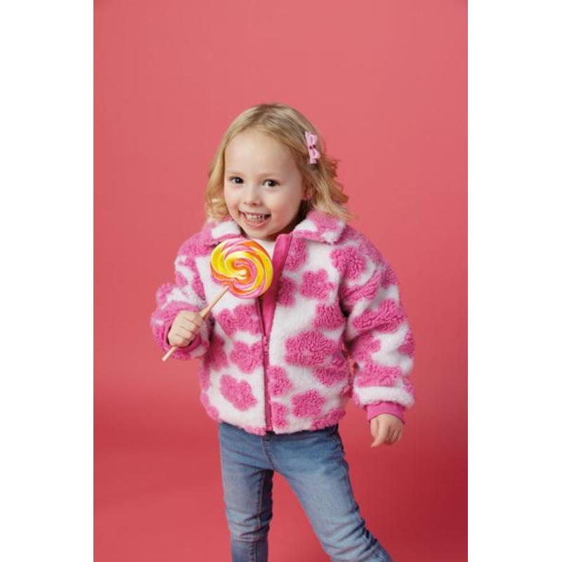 The Pink Flower Sherpa Toddler Jacket is a cozy and stylish choice for your little one. Crafted with a soft jersey lining, this jacket ensures warmth and comfort during chilly days. The front zipper allows for easy dressing, while the cotton rib sleeve openings and collar provide a snug fit. Designed in a charming pink flower pattern, it adds a touch of whimsy to any outfit. Available in a large size suitable for ages 4T-5T, this jacket is made with a durable body of 100% polyester and a lining blend of 59% cotton and 41% polyester, ensuring both quality and comfort. Perfect for outdoor adventures or casual outings, this jacket is a must-have addition to your child’s wardrobe.