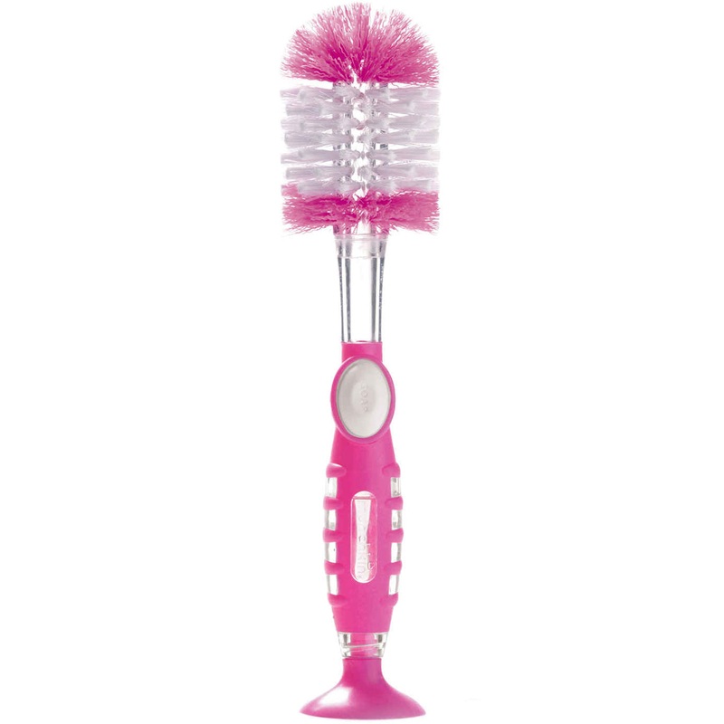 Munchkin’s patented suction cup base is designed to attach upright on your countertop, allowing bristles to dry quickly and keeping your brush away from household germs. Think of this double-duty brush as your right hand during your daily bottle washing routine.