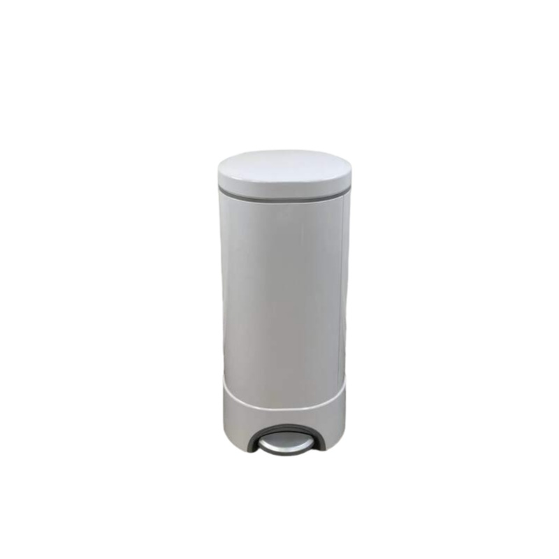 Condition: Gently Used"Keep your nursery smelling fresh with this handy diaper pail that locks odors inside with Arm and Hammer control. The foot pedal makes this system completely hands free. Works with rings and bags."
