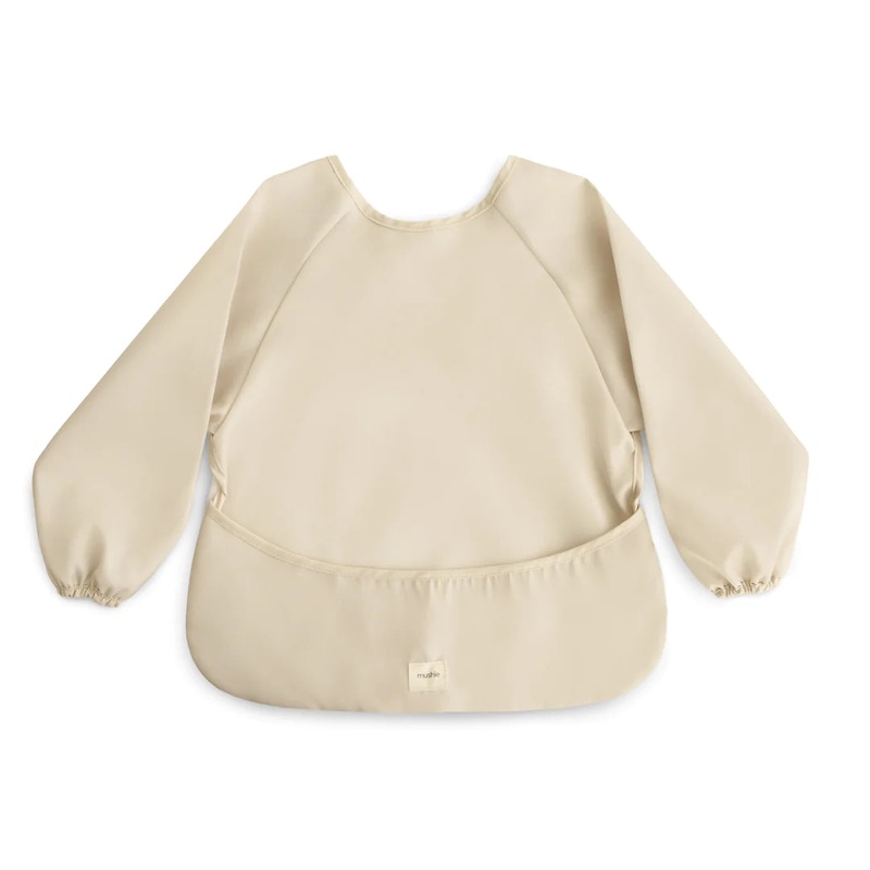 Keep the kids clean at mealtimes, during art projects or in other messy moments with our water resistant long sleeve bib. Its wide pocket easily catches food while the bib stays secure and fully covers outfits. With a velcro closure at the back of the neck