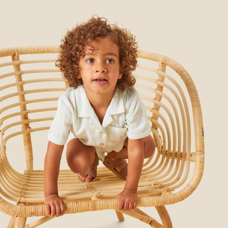 Light, airy and ready for summer adventures. Our organic cotton muslin shirt fastens with wooden buttons to a neat collared neckline.