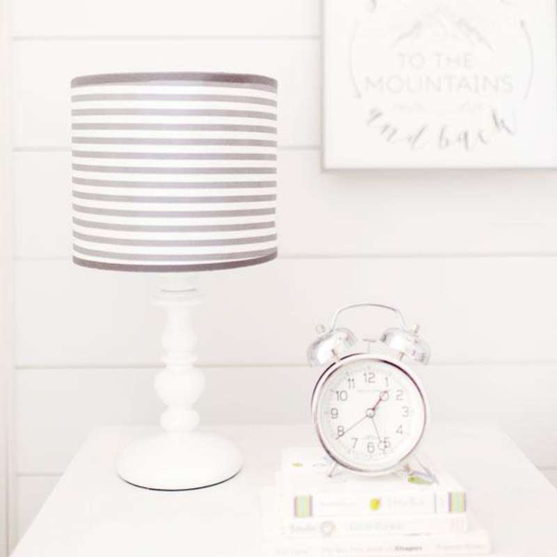 Lighten up your little adventurer's room with this nursery lamp! Perfect lighting for those late night rocking chair sessions. Drum shaped lamp shade with with painted white base will coordinate best with the Little Adventurer crib collection. Lamp stands