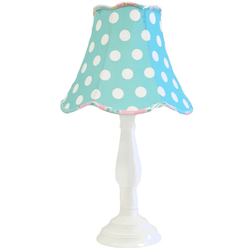 Pixie Baby in Aqua Lamp & Shade are the perfect addition to your Pixie nursery! Scalloped lamp shade and painted white lamp base coordiate with all of our Pixie Baby in Aqua accessories. 21″ tall by 12″ wide.