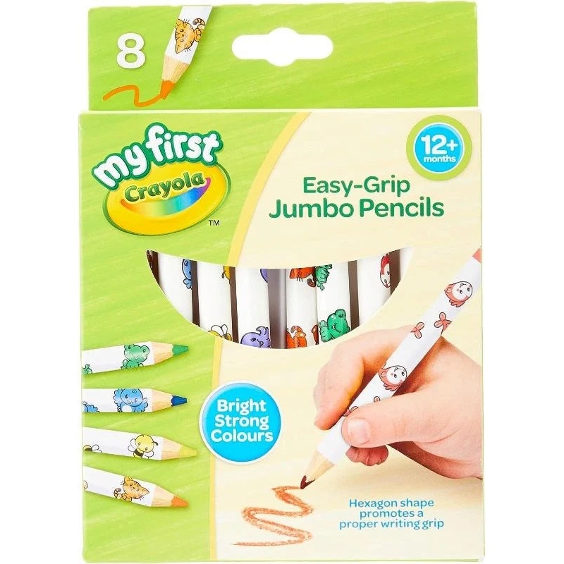 My First Crayola Easy Grip Colouring Pencils Especially created for small hands, Jumbo Pencils are perfect for young children to use for colouring and drawing. The larger size barrels allows children to grip the pencil more easily and are hard to break, pl