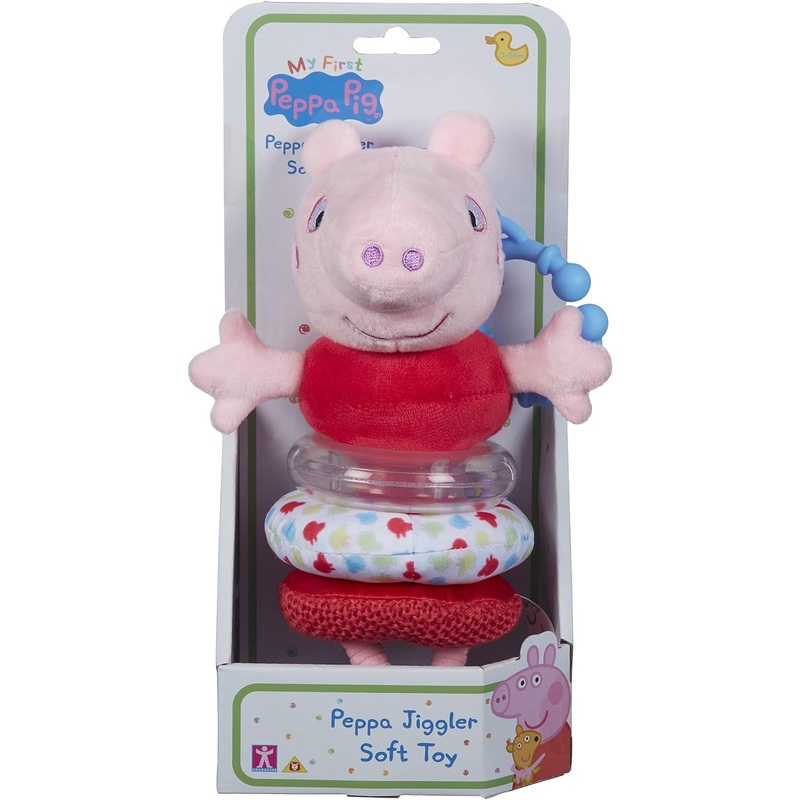 Eye- catching Peppa soft toyWith pull and retract jiggling motionFeatures bright colours and patternsWith multi sensory surfacesEncourages sensory development and motor skills