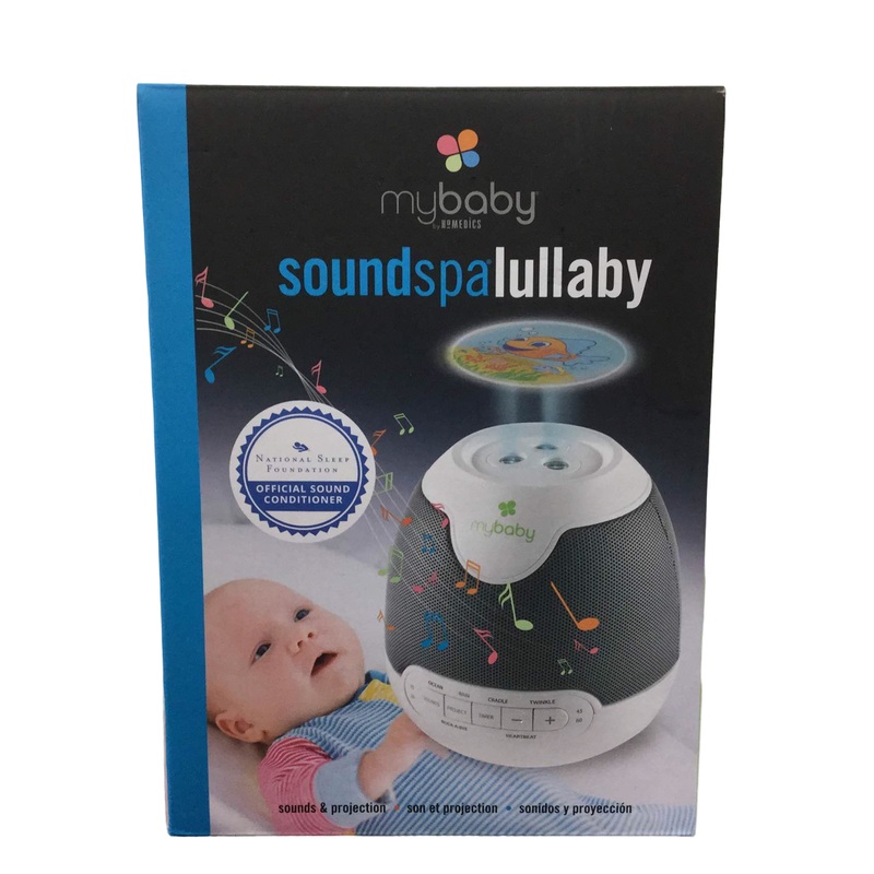 “This is the perfect addition to your babys nursery. Choose from 3 soothing sounds (Heartbeat, Rain, and Ocean) or 3 classic lullabies (Twinkle Twinkle Little Star, Rock-A-Bye Baby, and Brahms Cradle) to lull your baby to sleep. It also features a built in projector that will cast a soothing glow and images onto the ceiling or wall.”