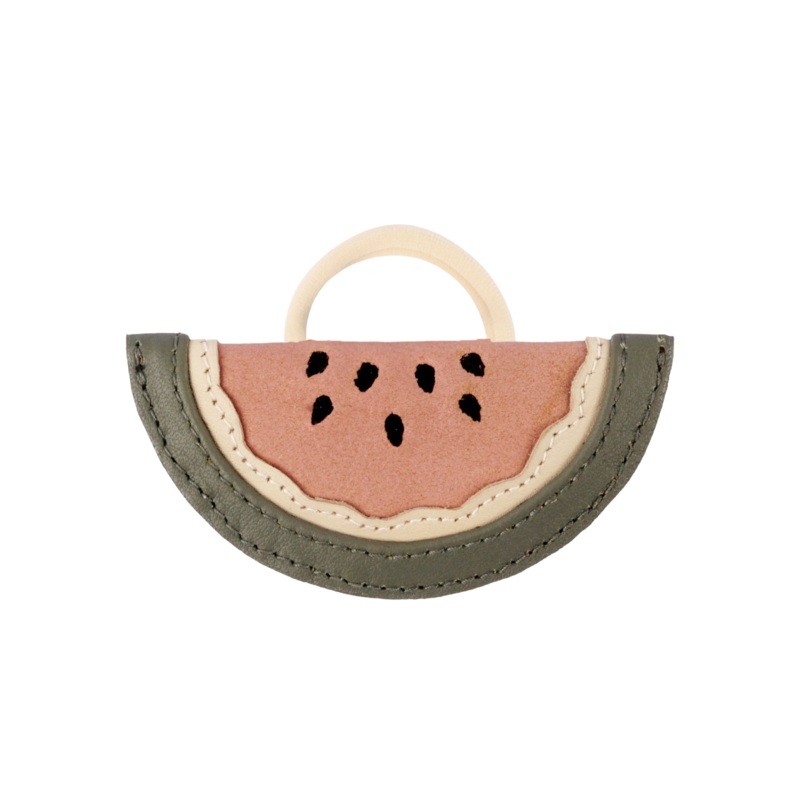 Juicy fruity!Say hello to summer with the Nanoe Watermelon Hair Tie. Made from 100% premium leather. It’s a must-have summer accessory, perfect for days and the beach and endless adventures; the elasticated tie keeps hair perfectly in place.The dimensions of the hair tie are 4 cm L x 5 cm W.