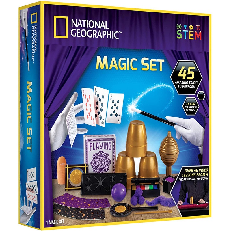 CLASSIC MAGIC KIT PROPS - Kids will learn the techniques behind many famous magic tricks, including illusions that use cups and balls, a false thumb tip, the ball and vase, a mysterious coin case, and a magic wand. SPECIALIZED CARD DECK - Kids will also ge