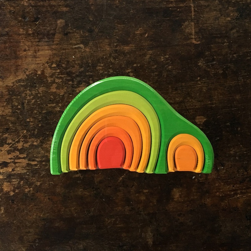 Colourful wooden arch house.19cm long, 11cm high.8 pieces.