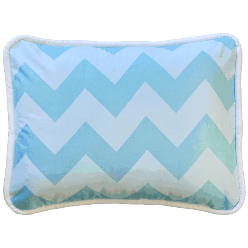 Inspired by the newly popular chevron pattern, our Zig Zag Baby in Aqua Crib Bedding will give your nursery a modern, clean look. Crisp white & aqua colors lend a fresh feel to your new baby’s room. Zig Zag in Aqua Throw Pillow is made from Big Zig Zag in Aqua fabric with Birdseye Pique cording. 16″ by 16″