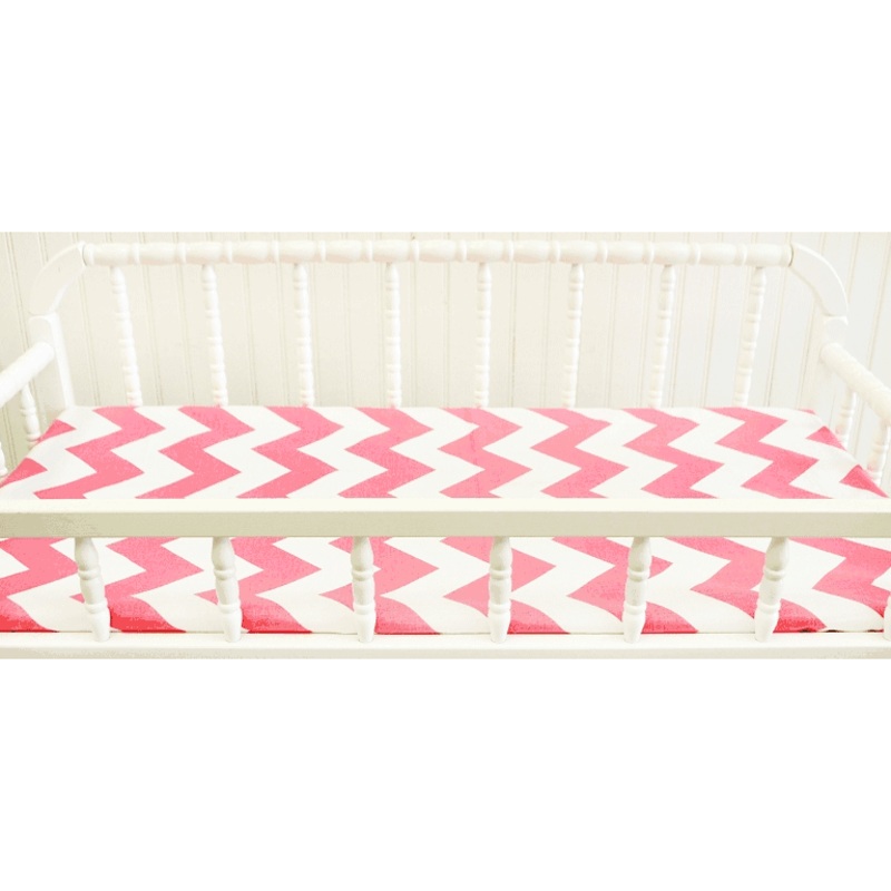 Inspired by the newly popular chevron pattern, our Zig Zag Baby in Hot Pink Crib Bedding will give your nursery a modern, clean look. Crisp white & hot pink lend a fresh feel to your new baby’s room. Change your baby’s diaper in style with our Changing Pad Covers. Available in a variety of fabrics, you are sure to find a color to match your baby’s nursery. Changing Pad Cover fits both flat and contoured changing pads. Elastic trim around edges make for a secure and snug fit on your changing pad. Order a second cover for backup. Changing Pad Cover Dimensions: 17″ wide by 35″ long.