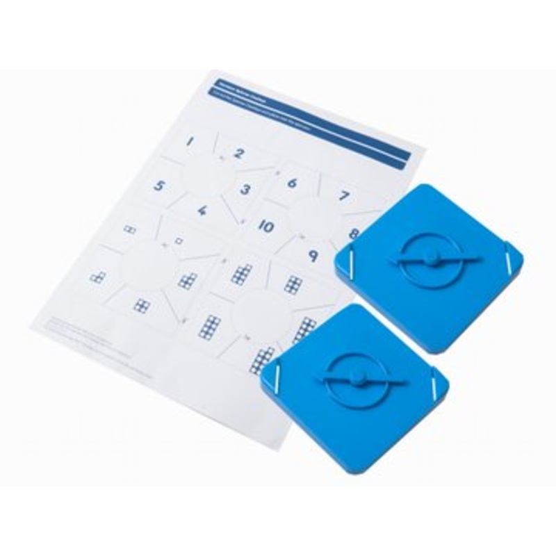 A quiet alternative to dice. The two spinners come with two sets of overlays showing Numicon Patterns and numerals 1-5 and 6-