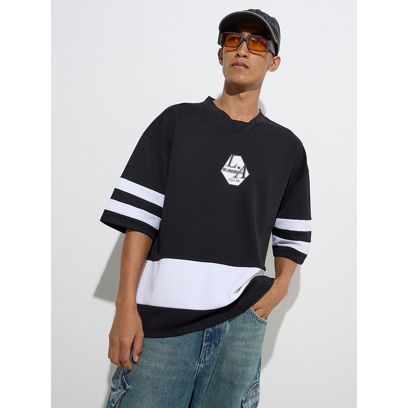 Nuon Black Colour-Blocked Relaxed-Fit T-Shirt
