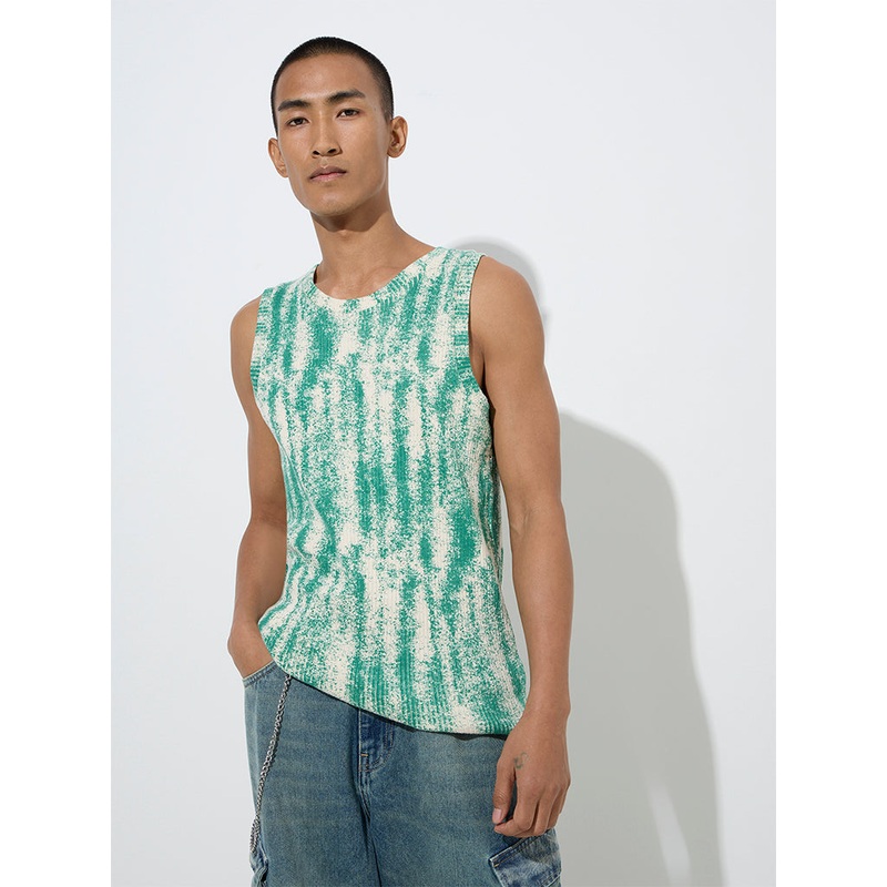 Take your casual wear up a notch with this green t-shirt by Nuon. Showcasing tie-dye patterns over a ribbed profile, the slim-fit creation is complete with a crewneck and sleeveless design.