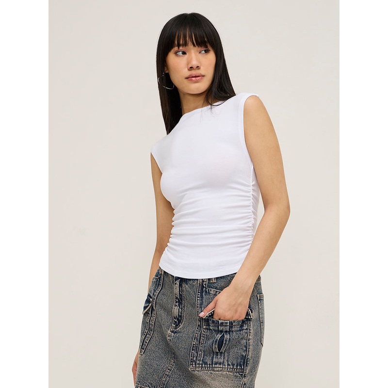 This white top from Nuon is designed with ruched detailing at the front. Spun from breathable fabric with added stretch, it includes a round neck and sleeveless cut.