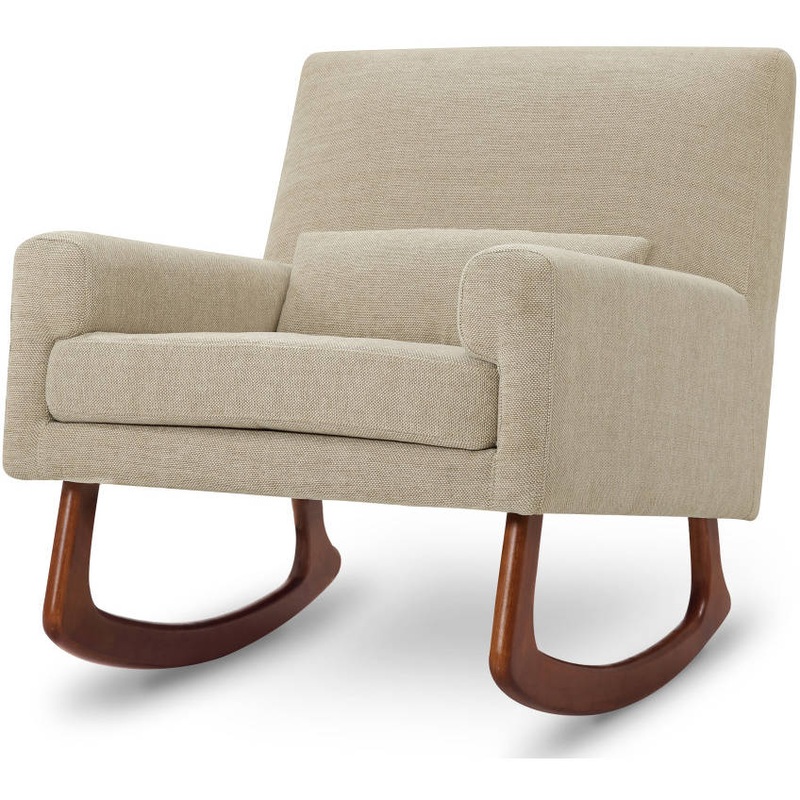 The well-balanced Sleepytime Rocker is lightly padded and finely upholstered with a fitted back using a crisp and rich polyester, linen and viscose blend. Ash hardwood legs allow for a smooth rocking motion.