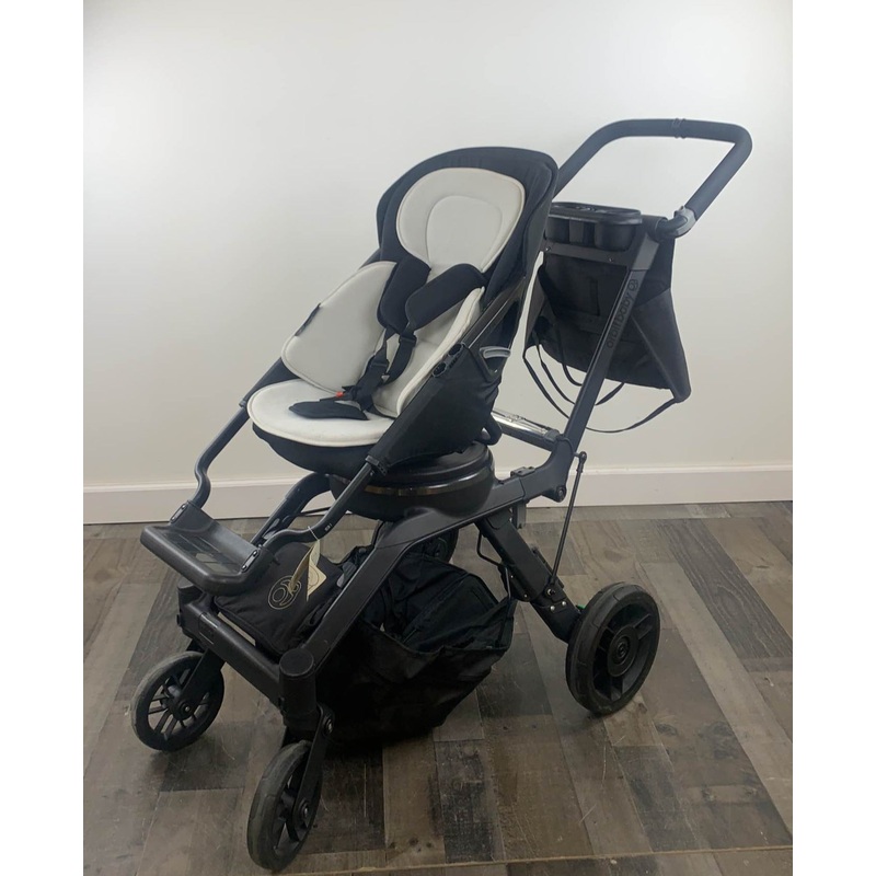 | This state of the art stroller is everything you need to be on the move. It is a high end stroller that is fully customizable to grow and change with your family. The unique circular seat base allows you to rotate the seat 360 degrees so baby can face any direction you choose. |