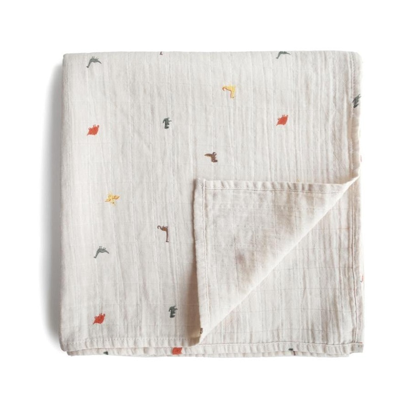 Cute little pops of dinosaur embroiderycover this soft andbreathable muslin swaddle blanket. Lightweight and comforting, this swaddle will keep your newborn cozy and happy, which makes mama happy, too.