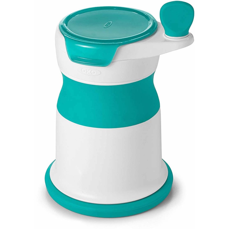 Conveniently shaped to allow for quick filling and adding liquid to control thickness, the Mash Maker is designed to maximize ease. A non-skid base provides stability while mixing, and also catches excess liquid to minimize messes. The wide mouth lets you scoop and serve pureed food from the top without disassembling the Mash Maker.